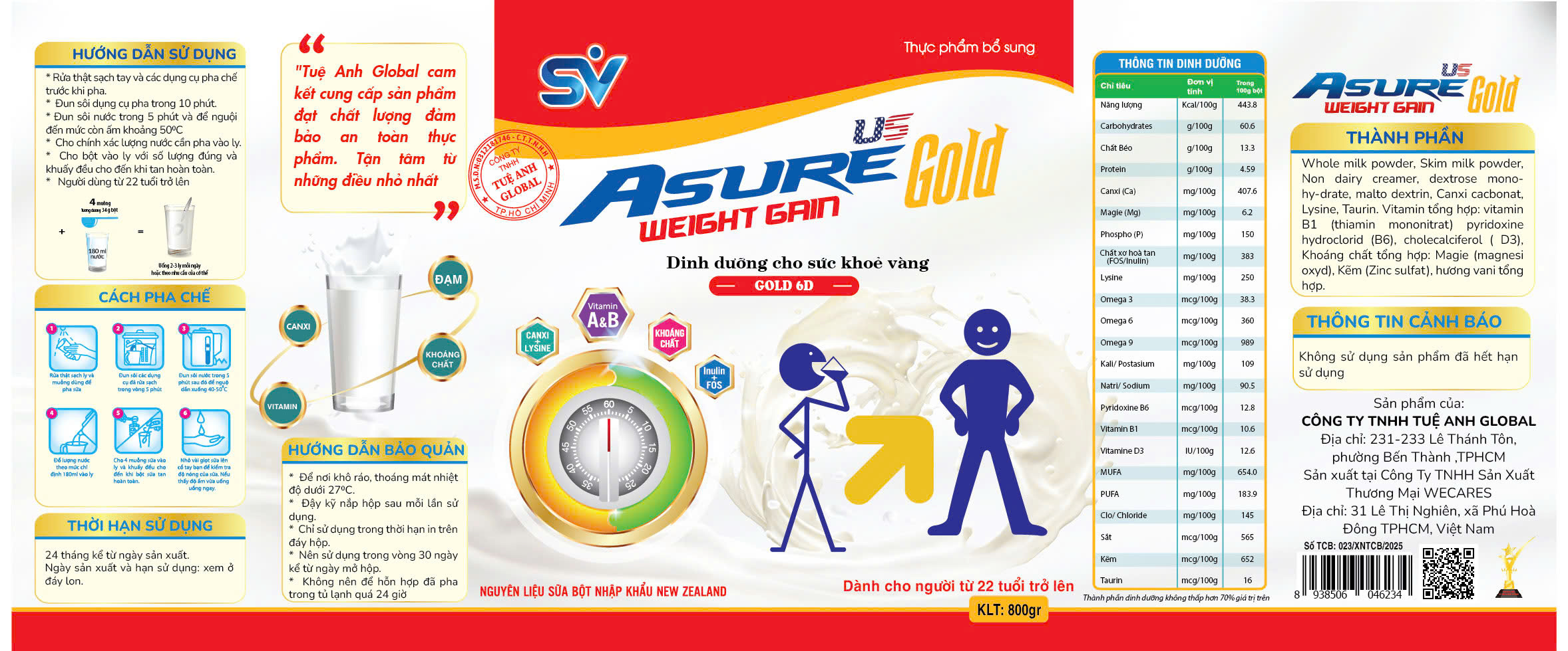 Asure Gold WEIGHT GAIN được đặc chế theo công thức tiên tiến, cung cấp đầy đủ các chất dinh dưỡng và dưỡng chất thiết yếu như: Whey protein, MTC, Lysine,…có tác dụng kích thích sự phát triển các men vi sinh (Probiotics) có lợi đồng thời ngăn ngừa các vi khuẩn có hại; tạo đường ruột khỏe mạnh; giảm rối loạn tiêu hóa; giúp ăn ngon miệng. Đặc biệt, lượng chất xơ hòa tan (FOS/Inulin) có trong sản phẩm vừa hỗ trợ hấp thu tối đa các dưỡng chất dinh dưỡng vừa ngăn ngừa táo bón giúp cơ thể tăng cân an toàn và nhanh chóng.
